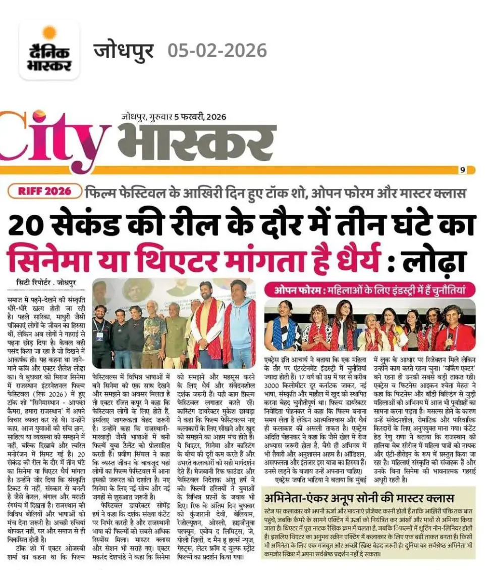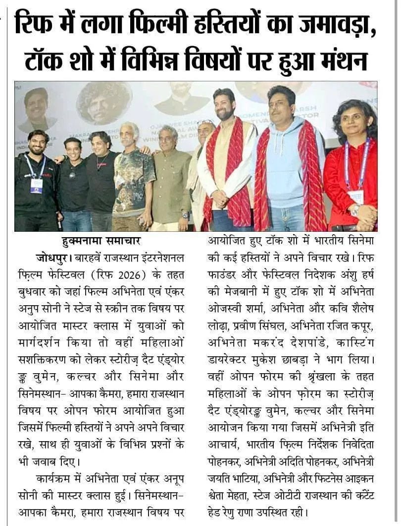Ojaswwee Sharma’s interaction at RIFF 2026 reinforced the festival’s role as a space for dialogue, discovery, and cultural exchange, underscoring cinema’s potential to bridge regions and communities across the country.