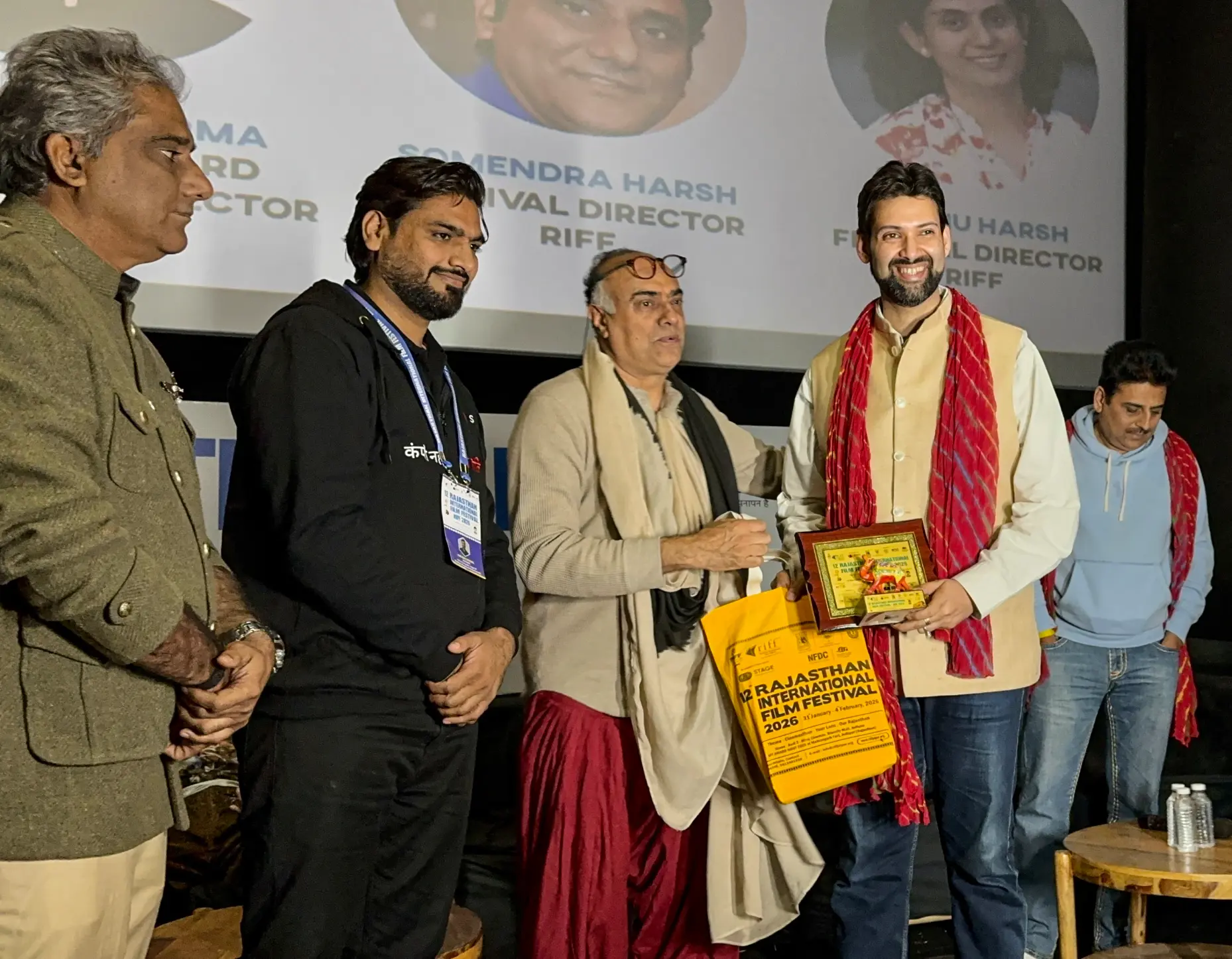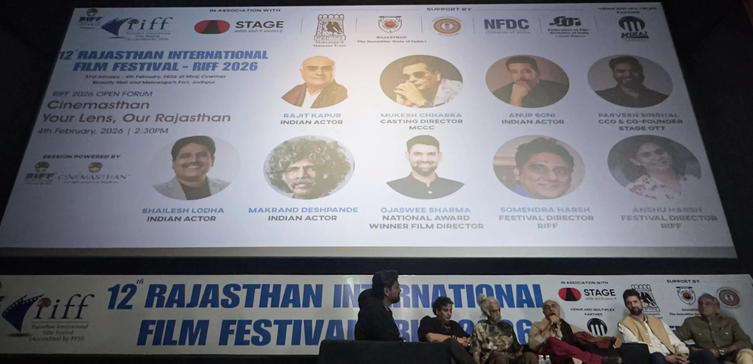 Featured National Award-winning film director Ojaswwee Sharma with RIFF founders and Festival Directors Shri Somendra Harsh and Smt Anshu Harsh; alongside Shri Rajit Kapur (Actor), Shri Shailesh Lodha (Actor & Poet), Shri Mukesh Chhabra (Casting Director), Shri Anup Soni (Actor), Shri Markand Deshpande (Actor), and Shri Parveen Singhal (COO, STAGE OTT).