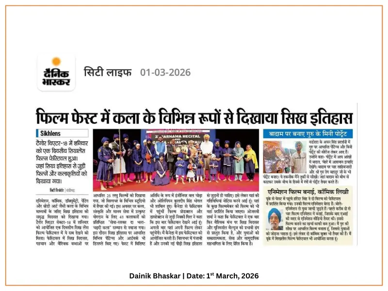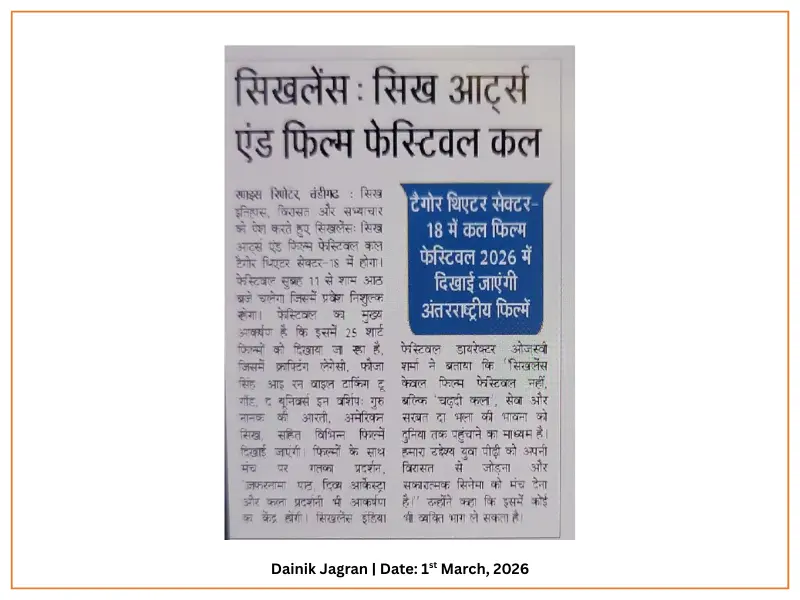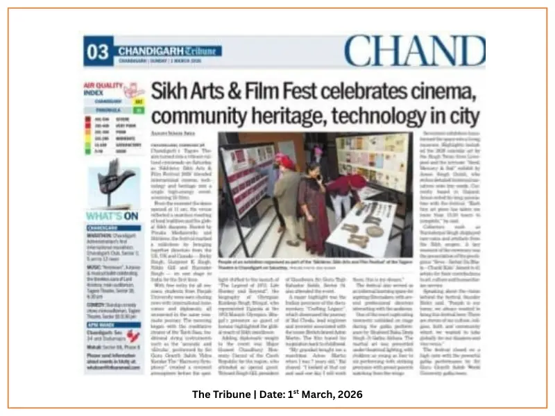 We are honoured to cordially invite you to the Opening Ceremony of the 7th Sikhlens: Sikh Arts & Film Festival 2026 in Chandigarh at 11 AM on 28th February, 2026 (Saturday)