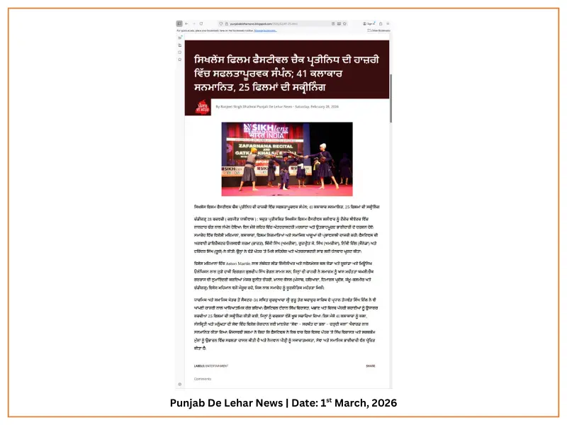 Link: https://punjabdeleharnews.blogspot.com/2026/02/sikhlens-film-festival-concludes.html